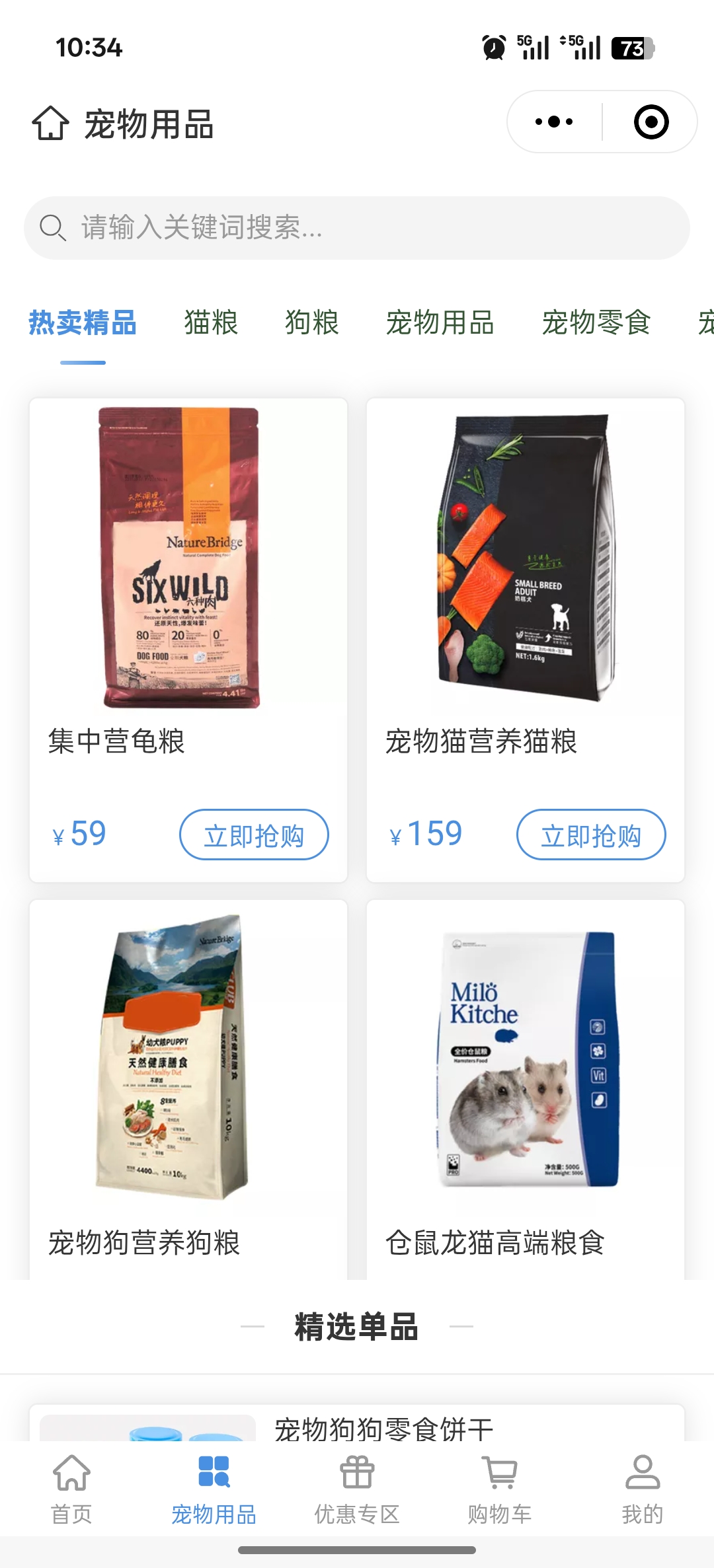 场景化导航:按宠物品种/生命周期(幼犬、老年猫)分类,结合LBS推送附近急缺商品(如暴雨天推荐凉感衣)。